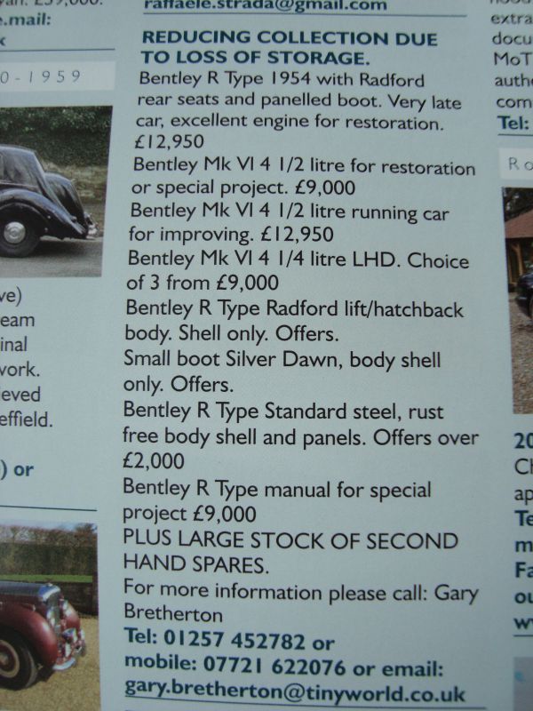Peris Edwards at Racing Green, tells me that that have several decent body shells, from both abandoned projects and some dealer P/X unsaleables, including a couple of reasonable HJM,s and a JY. |