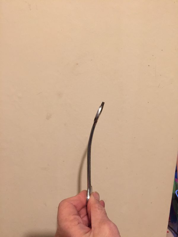 I bought the ebay spanners (thanks Geoff) and with quite a lot of heat, got a suitable bend, it works well!