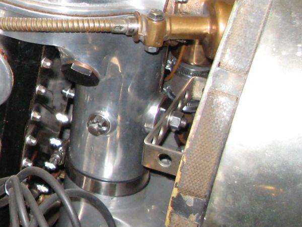 Two straps across the radiator shell seems easiest but I am sure I have seen a bracket from the mag drive casting somewhere.