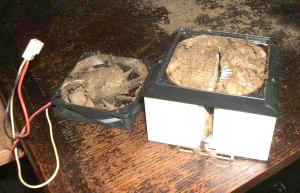 A motherboard failed recently on one of my computers and has now been replaced with a new one. The CPU fan was clogged with much dirt although this was not the cause of the problem. I will have to clean things more frequently in future.