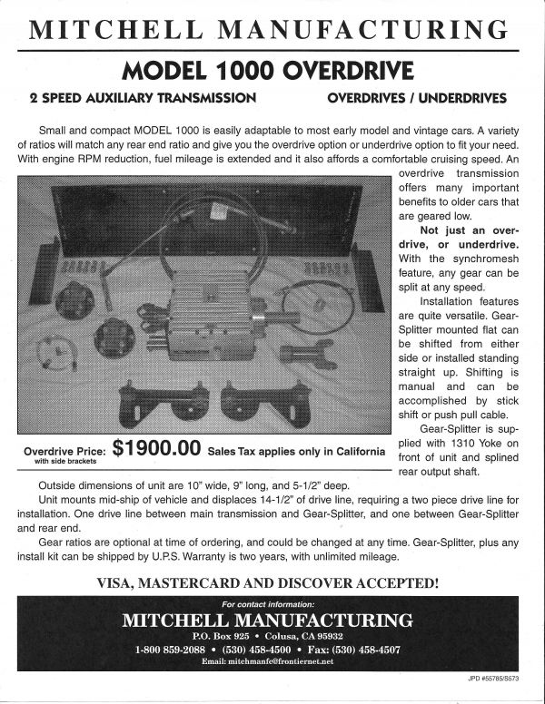 There's also the American Mitchell Model 1000 overdrive "Manufactured for open driveline vehicles built in the 20’s and 30’s." (They've got a website but it's a bit rubbish)