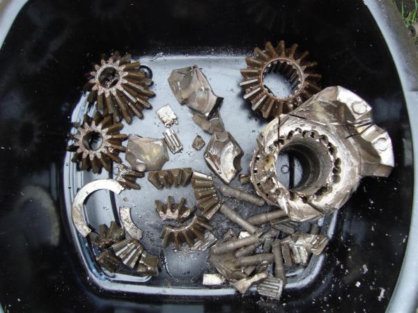 Well Chris, what a fine mess! It appears as though there was a catastrophic seizure of the inner bearing race on the large component on the right of the picture and momentum did the rest. Was it lack of lubricant that caused the failure?