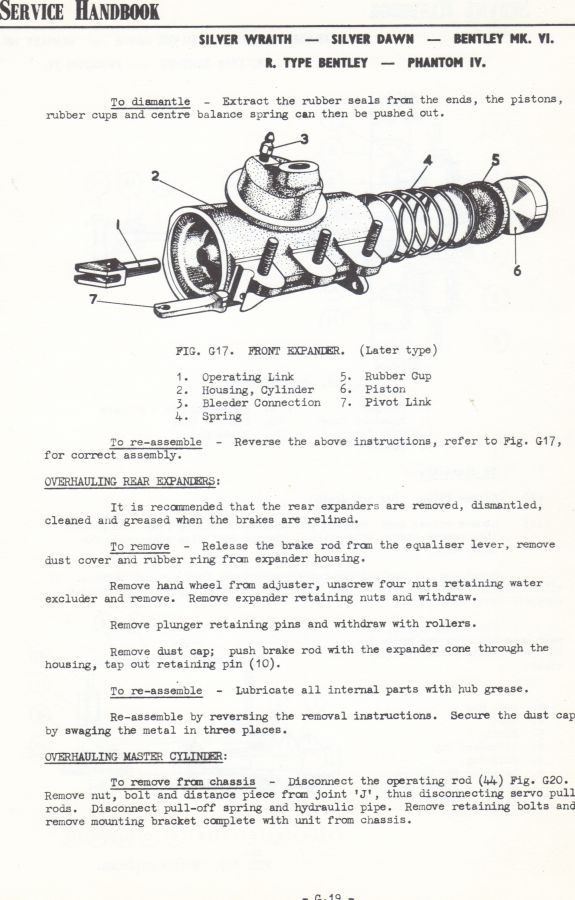 As one of your front early expanders is missing and new ones are £700, you may source the later double piston type, but be advised that the drawing G17 is actually a mirror image of the real thing.