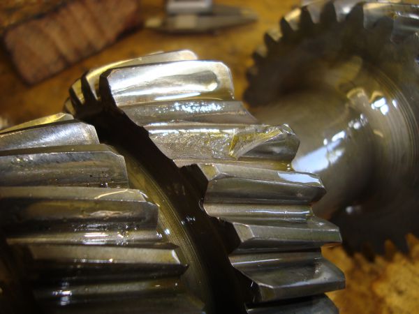 Finally, this 2nd motion(lay) shaft came out of DOC9. a Bob Burrell special, and a blown R-R Phantom 3 (V12) engine in a Derby Bentley chassis,(!!) with a Chrysler rear axle (!!)and the first of the Jaguar built 4 speed synchromesh E Type gearboxes, the only defect being 2 missing teeth. The question is, if the corresponding 3rd speed constant mesh driven gear is undamaged, and the teeth were in the bottom of the case , how did it happen?????