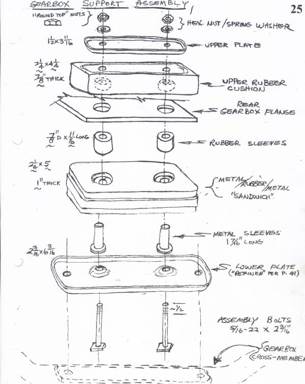 The engine of the 4 ¼ is supported at the rear on 2 rubber supports.