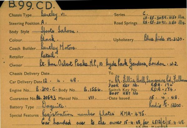 Hello everybody. I have recently joined the drivers club after acquired a 1948, 4257cc Bentley VI. I have a copy of the original delivery information showing it was first sold to Rt Hon Osbert Peake in London. However it says the car was originally black with blue hide upholstery but is now British racing green with brown upholstery and I'm not sure what chassis shape it originally had. The car has only had 3 previous owners and I'm hoping that somebody may know or knew the second owner. Thanks in advance, Andy