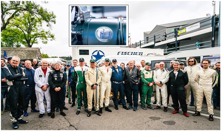Drivers, including Peter's son Clive and grandsons Stuart and James (pictured centre) alongside several other BDC racers, gathered prior to the start of the Motor Racing Legends Pre-War Sports Cars race to honour the long-time and successful Bentley driver, who passed away recently aged 91.